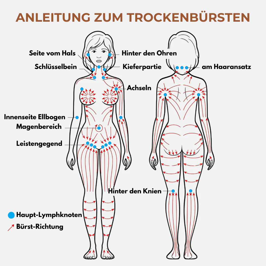 👉 Überall dort, wo Lymphknoten sitzen und sich Flüssigkeit stauen kann, kann der Pinsel helfen, die Durchblutung anzuregen und Entlastung zu schaffen.
